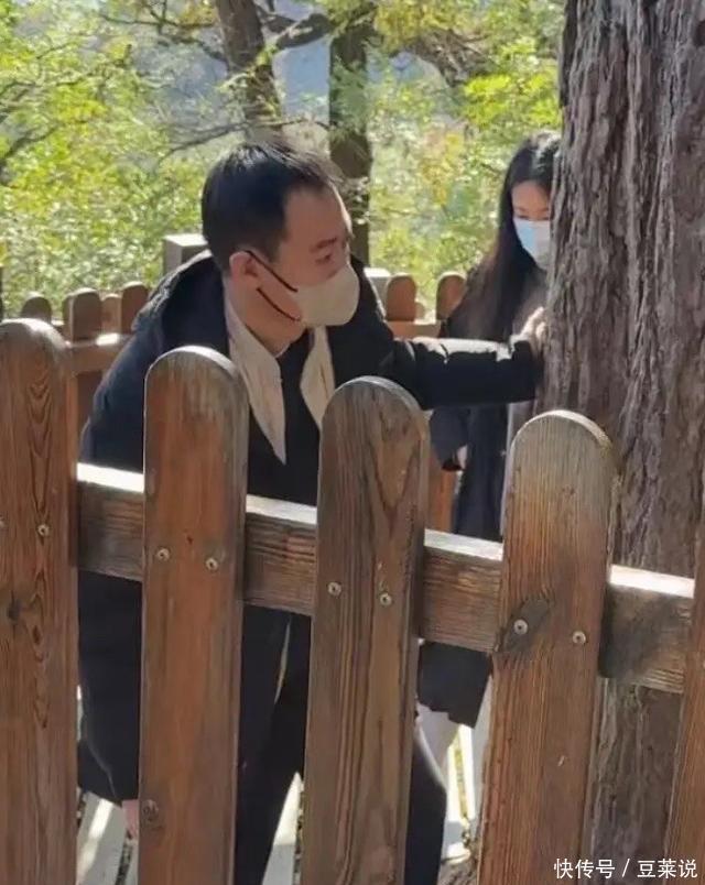 李乃文也出现了,这一次他显得非常低调,上身穿了一件黑色的外套,内搭了一件白色的内衬,非常低调地沿路行走。 而这次大家也发现了他们此行的目的,他们来到了银杏树下转圈祈福,柏青还戴上了口罩,